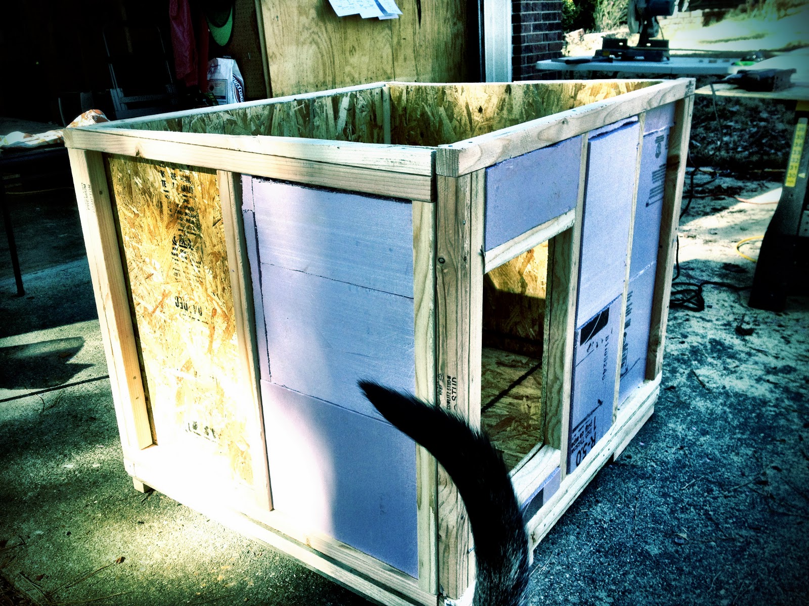 We’re BUILDING a doghouse.  We ordered plans online from doghouseplans.com and gathered ideas from reviewing hundreds of doghouse photos.  We’ve gone to Home Depot a half dozen times.  We’ve spent good money and large parts of four days building this doghouse.